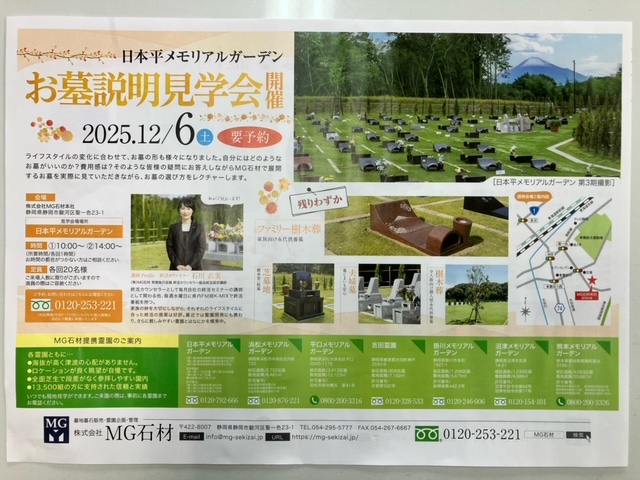下記の日程にて、日本平メモリアルガーデン第三期のお墓説明見学会を開催いたします。