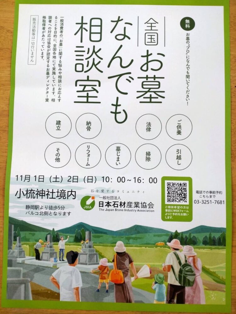 本日、明日と静岡街中の神社にて、全国お墓なんでも相談室 が開催されます。